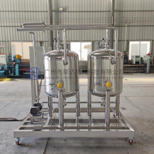 該CIP清洗系統由堿罐、熱水罐以及去程泵和各種閥門、傳感器、清洗管路、電控箱等組成。