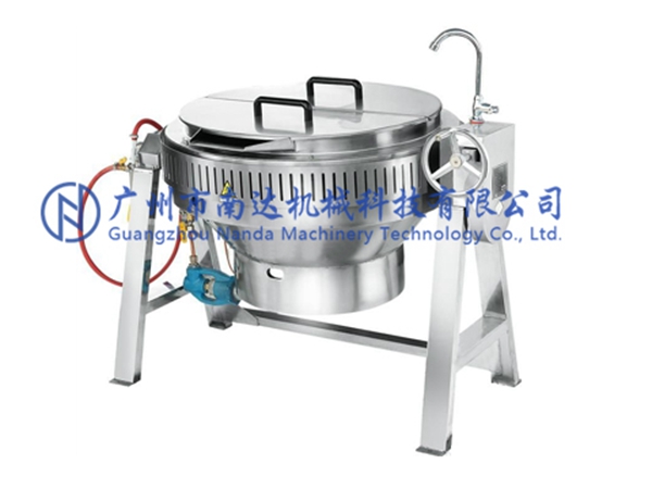 夾層鍋從類型上分為半自動與全自動。 從加熱形式上分為:蒸汽式、燃氣式、燃氣導熱油、電加熱導熱油和電磁加熱方式。 主要結構由鍋體、架體、攪拌系統、加熱系統、調速傳動裝置、攪拌臂、鍋體翻轉系統等組成。